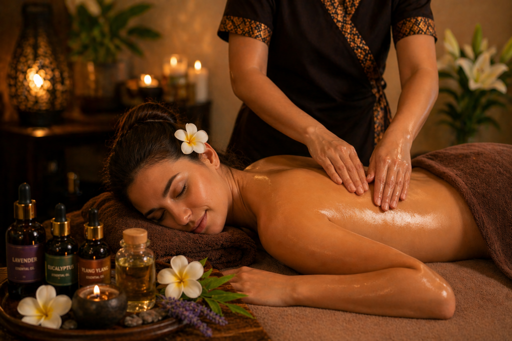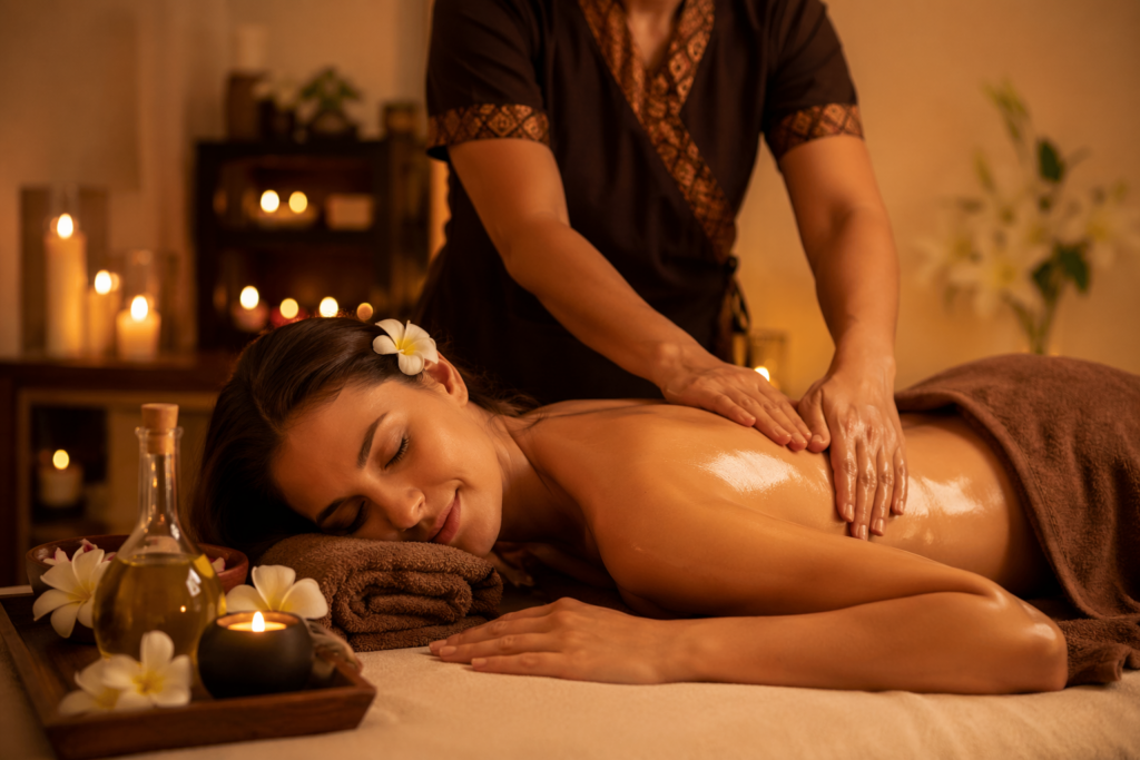 Il massaggio Thai con olio combina la tecnica tradizionale thailandese con movimenti fluidi e rilassanti.